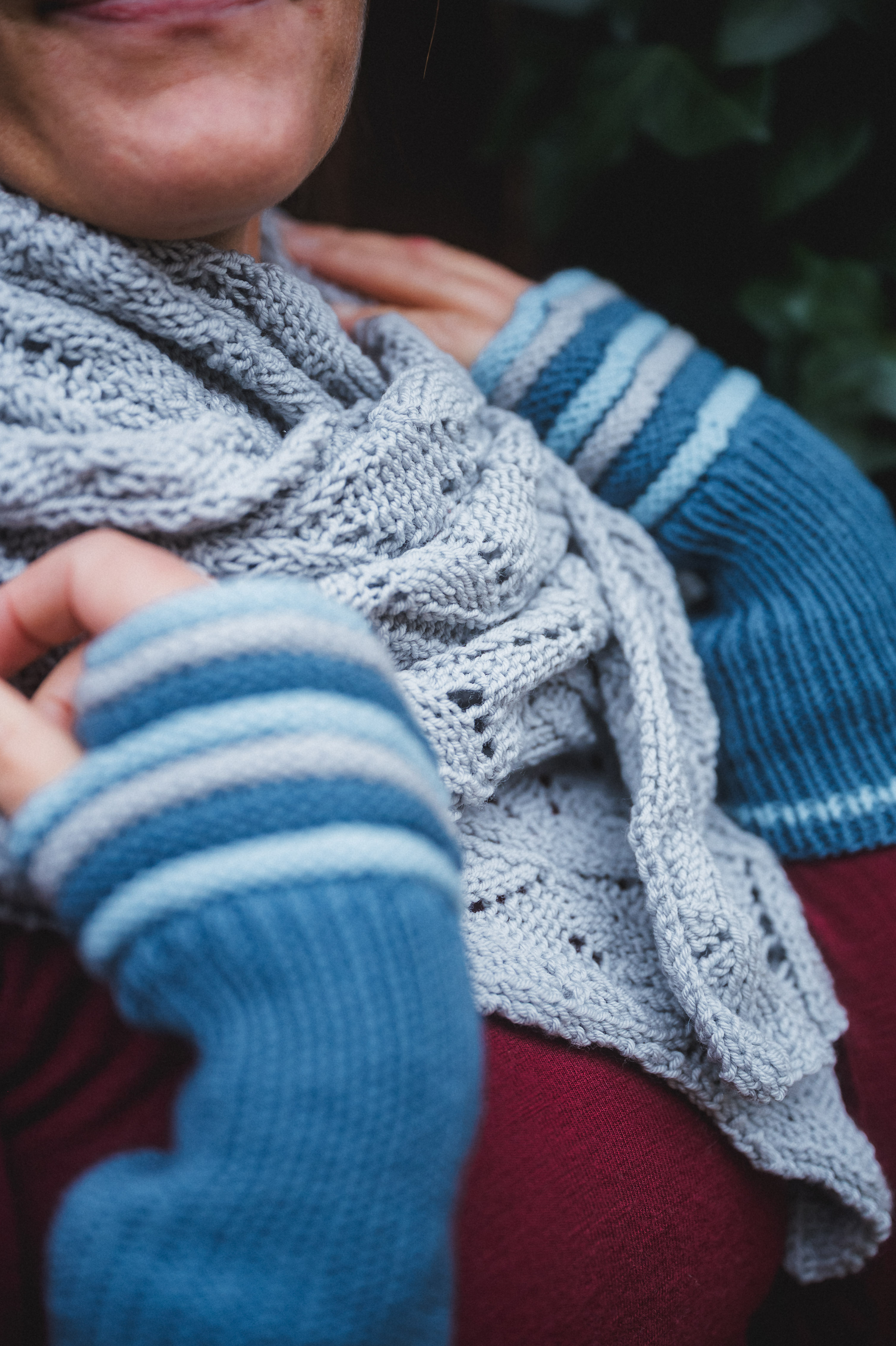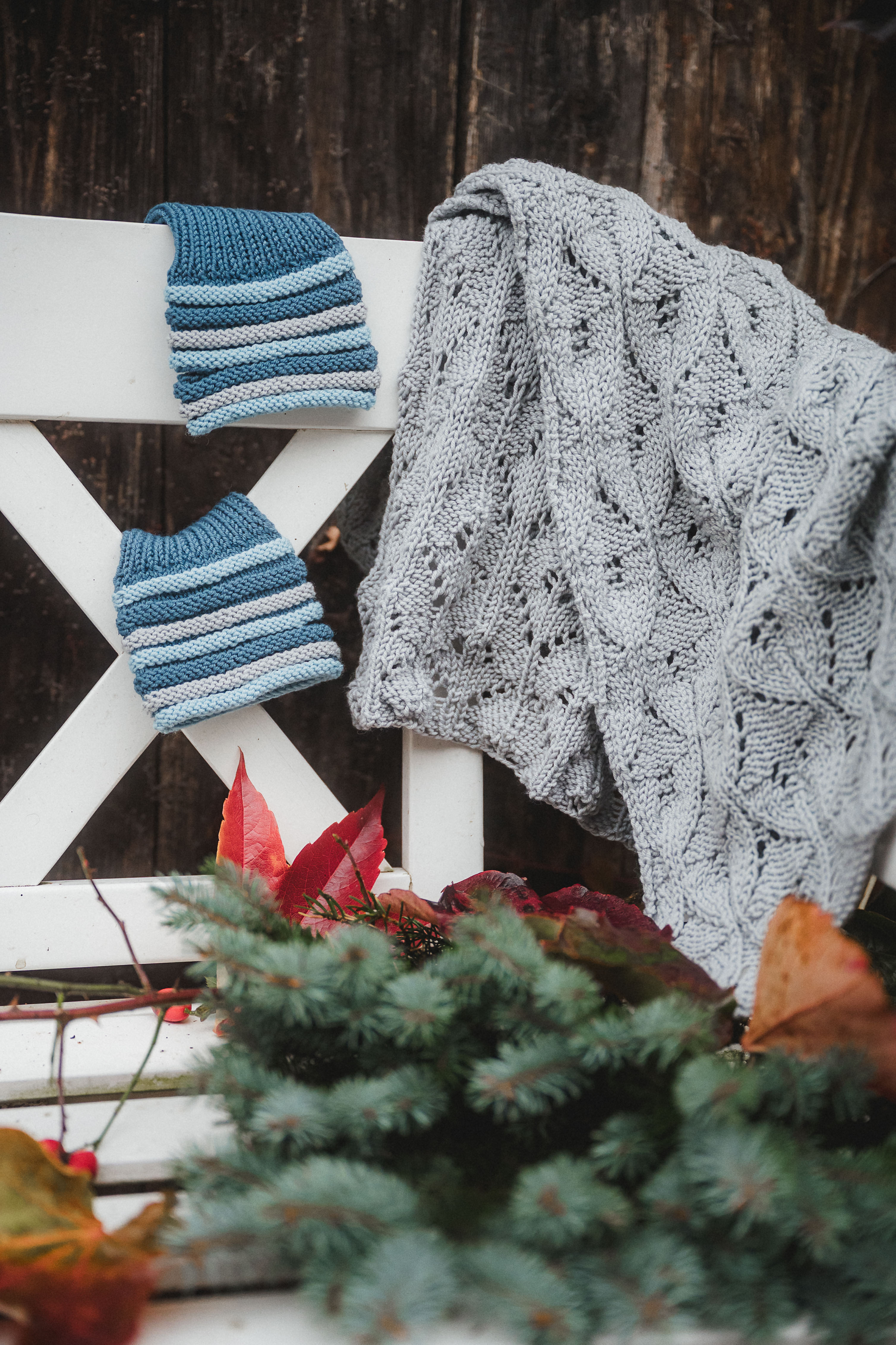 - je 50 g Merinowolle Weich & Warm vom Finkhof in Rauchblau, Hellblau und Silber