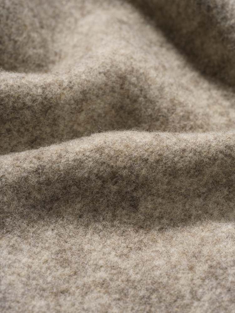Hergestellt wird der Schwere Walk in einer Traditions-Tuchfabrik aus 100 % regionaler, ungefärbter Bio-Schurwolle (kbT). Der Stoff wird mit Wasser und biologisch abbaubarer Seife leicht gewalkt und anschließend von beiden Seiten geraut. So entsteht ein weicher, kompakter und blickdichter Walk mit schöner, leicht flauschiger Oberfläche.