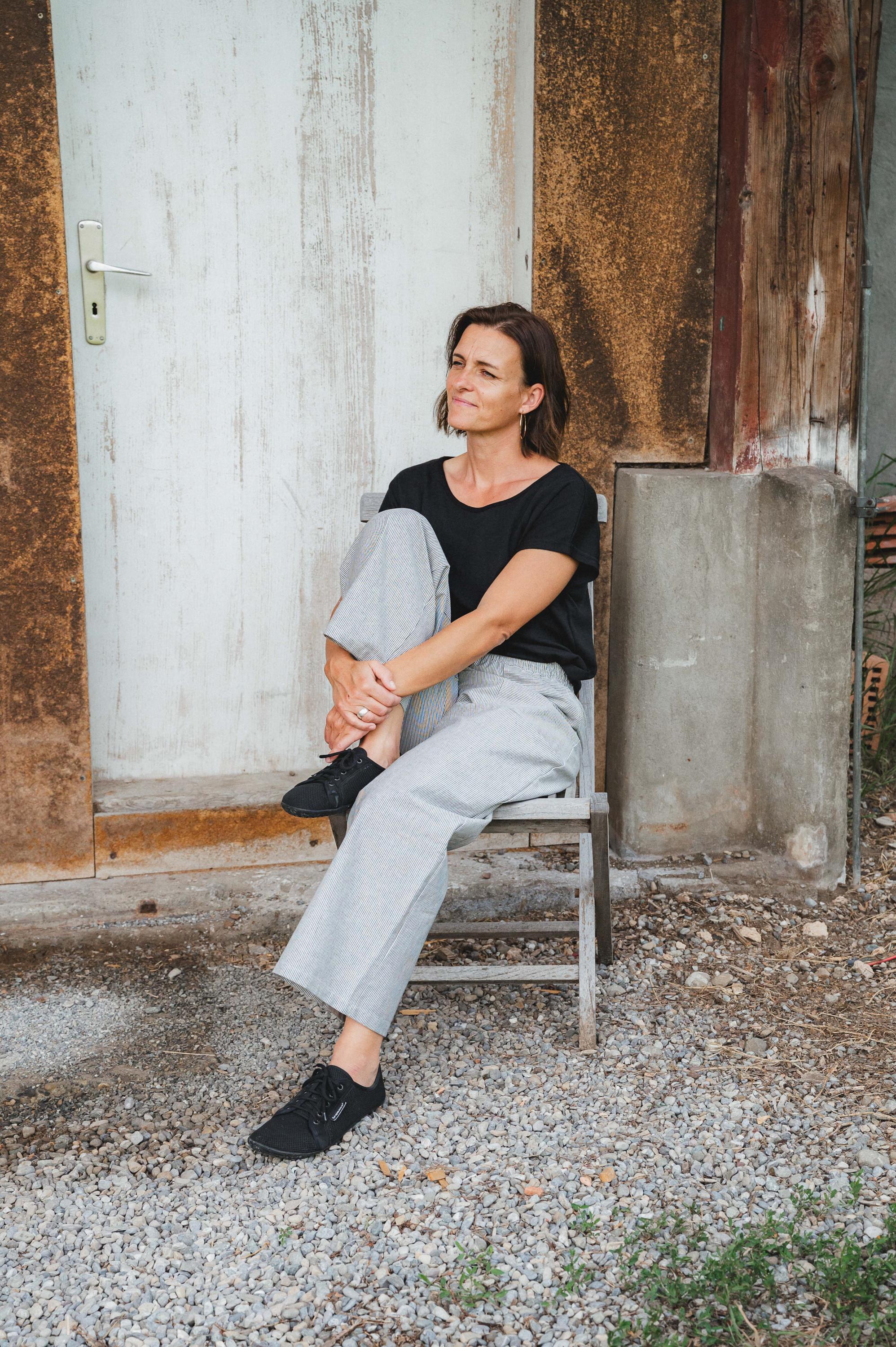 In unserer hauseigenen Stoffnäherei fertigen wir in kleiner Serienproduktion diese locker und weit geschnittene Damenhose aus zart blau-weiß gestreiftem Baumwollstoff aus 100 % Bio-Baumwolle (kbA). Durch das rundum eingearbeitete breite Gummiband sitzt sie wunderbar bequem und man ist schnell hineingeschlüpft. Vorne hat die Damen-Baumwollhose zwei große aufgesetzte Taschen.