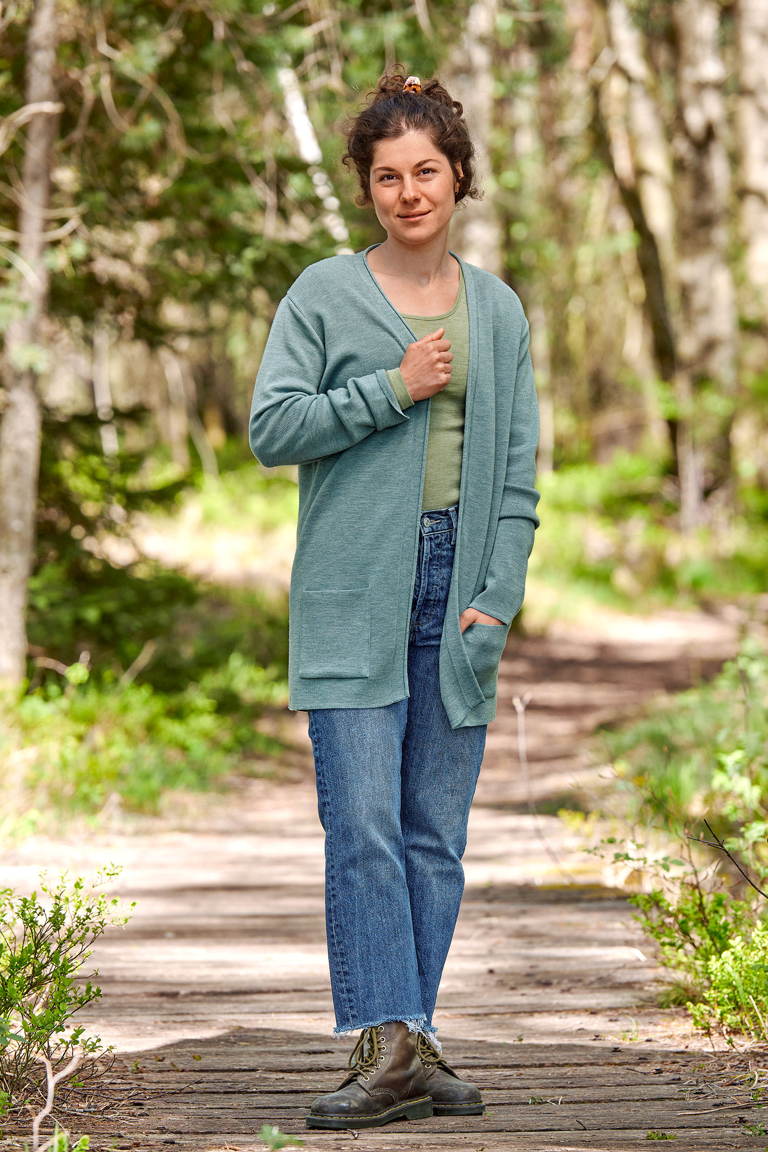 Long-Cardigan aus Bio-Merinowolle aqua Gr. M