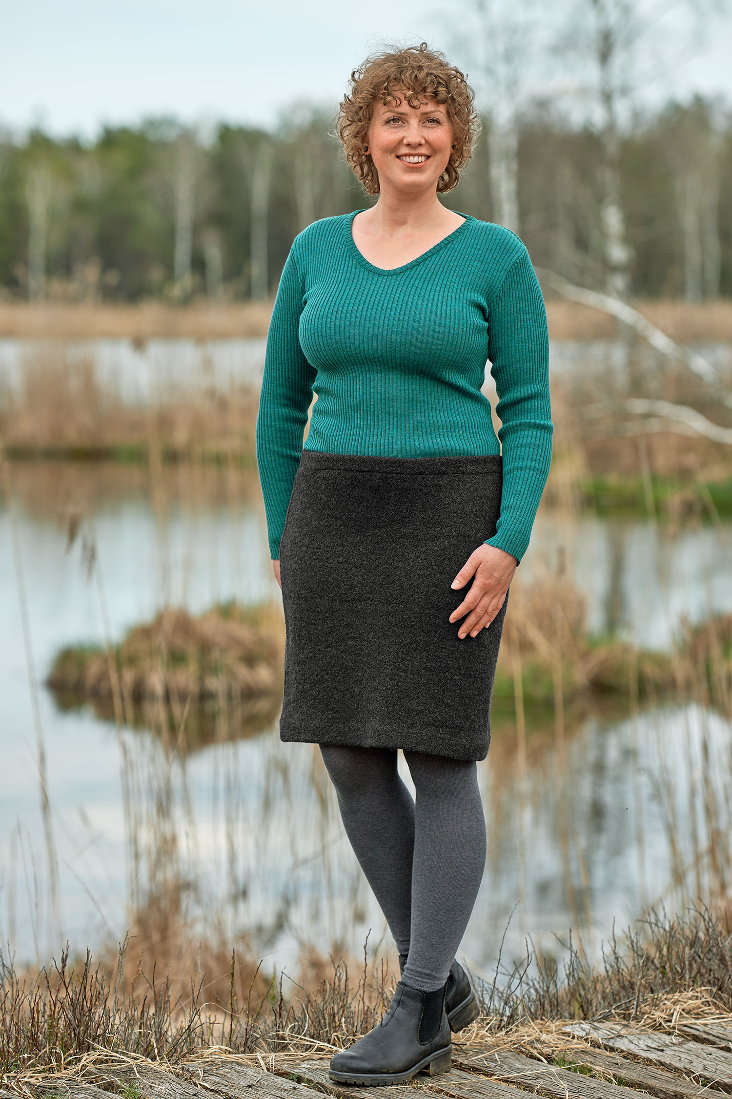 Schlicht und einfach, schön und praktisch - das ist unser Wollkrepprock. Der Strickstoff aus reiner Schurwolle (kbT) erhält durch leichtes Walken eine fein strukturierte Oberfläche. Genau das richtige Material, für einen Rock, der für kühlere Tage geeignet ist. Er hält warm und schenkt viel Bewegungfreiheit. Gerade geschnitten und mit breitem Taillengummi versehen, ist er ein Lieblingsstück, in dem man sich rundum wohlfühlen kann.