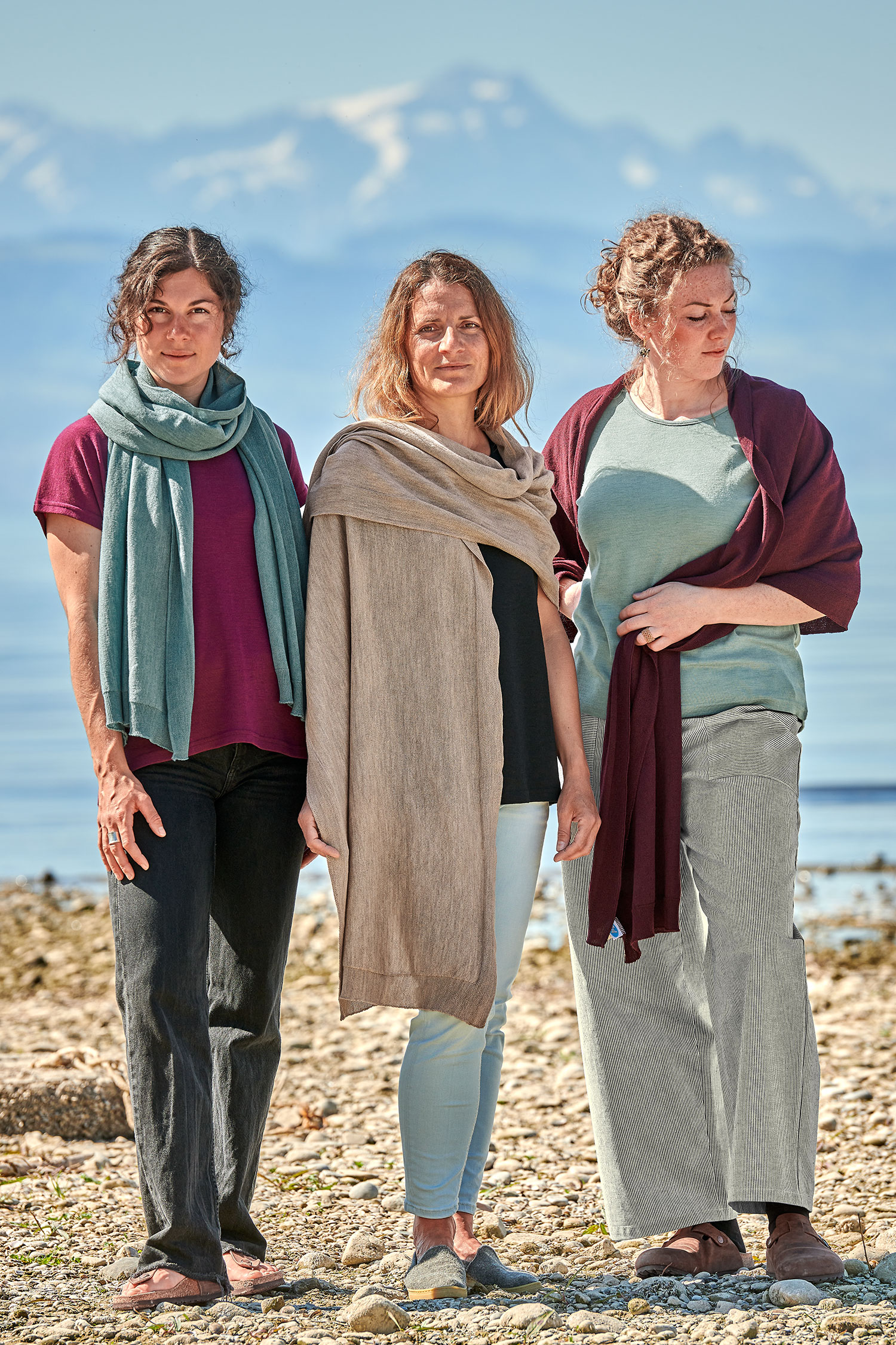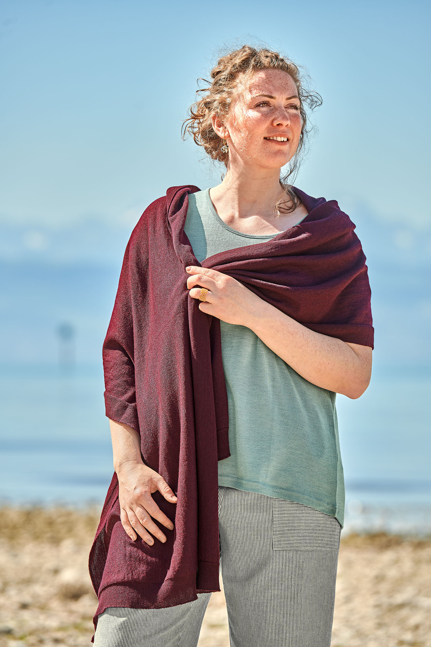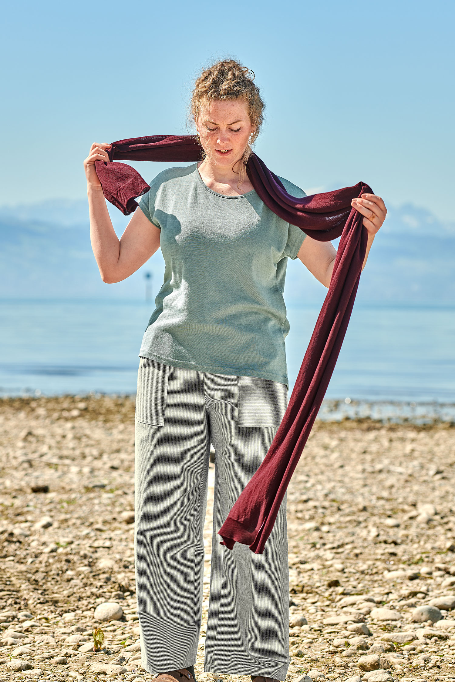 Bio-Merinoschurwolle (kbT) lässt sich sehr vielseitig tragen. Mehrfach um den