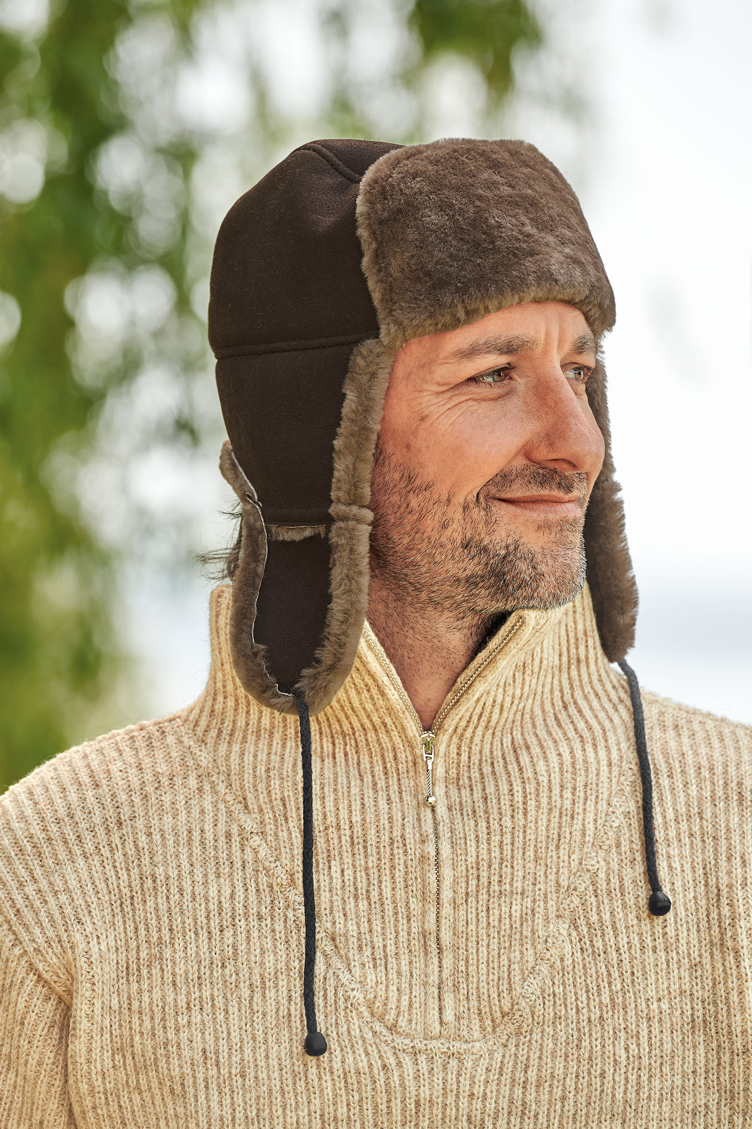 Mit dieser wunderbar warmen Herrenmütze aus echtem Fell sind kalte Ohren definitiv passé! Sie ist innen komplett mit kuschelig warmem braunem Schaffell gefüttert, das herrliche Wärme spendet und zugleich gute temperaturausgleichende Eigenschaften hat. Die extra langen seitlichen Klappen decken Ohren und einen Großteil der Wangen ab, sodass Kälte und Wind keine Chance haben. Außen besteht unsere Fellmütze aus Chrom-Relugan gegerbtem Leder in einerm schönen warmen Braunton.
