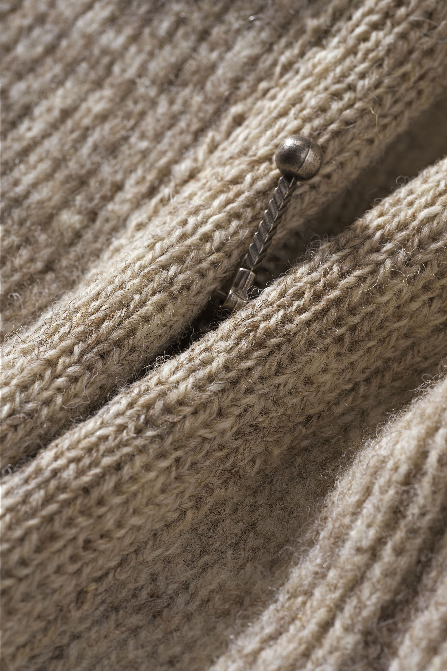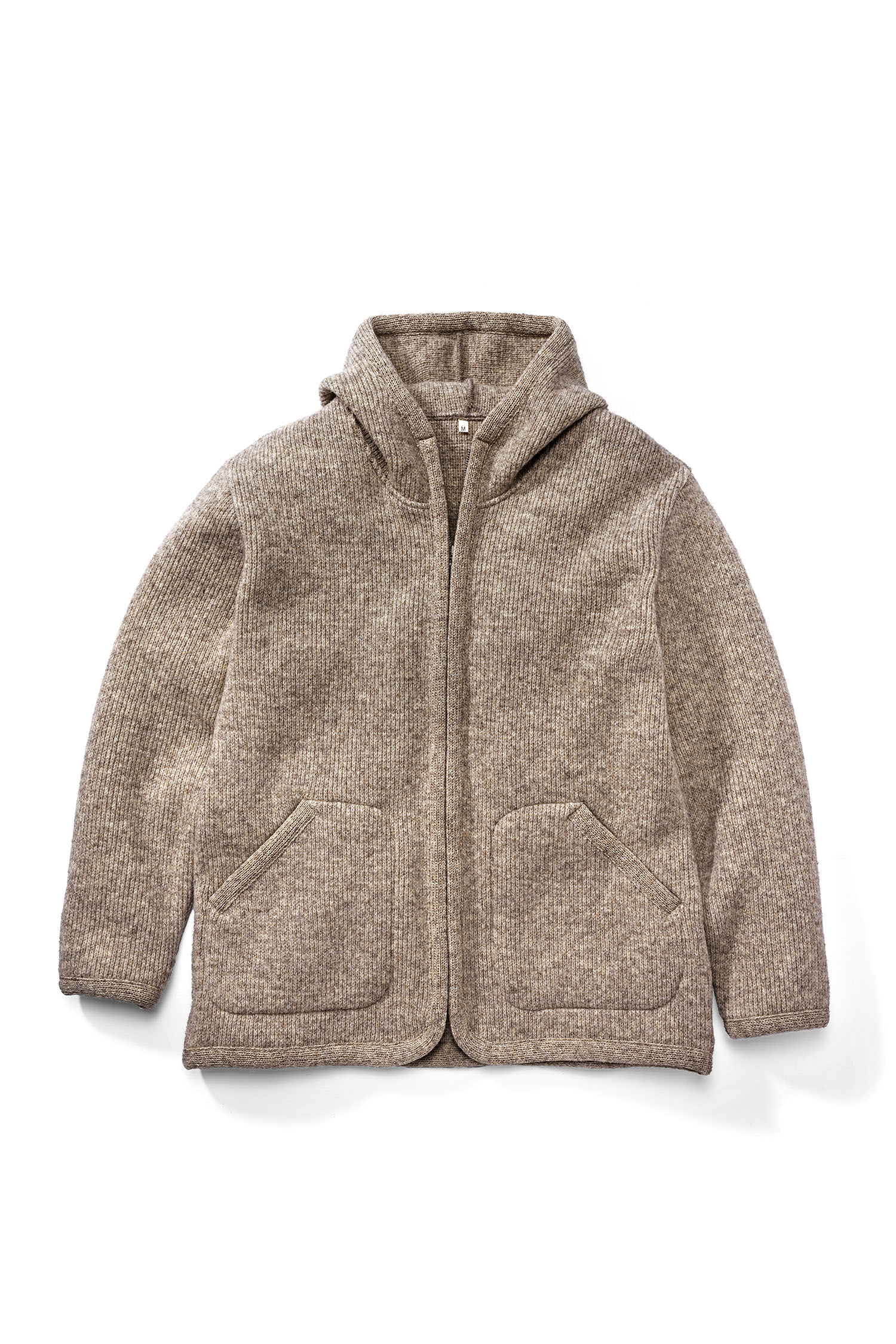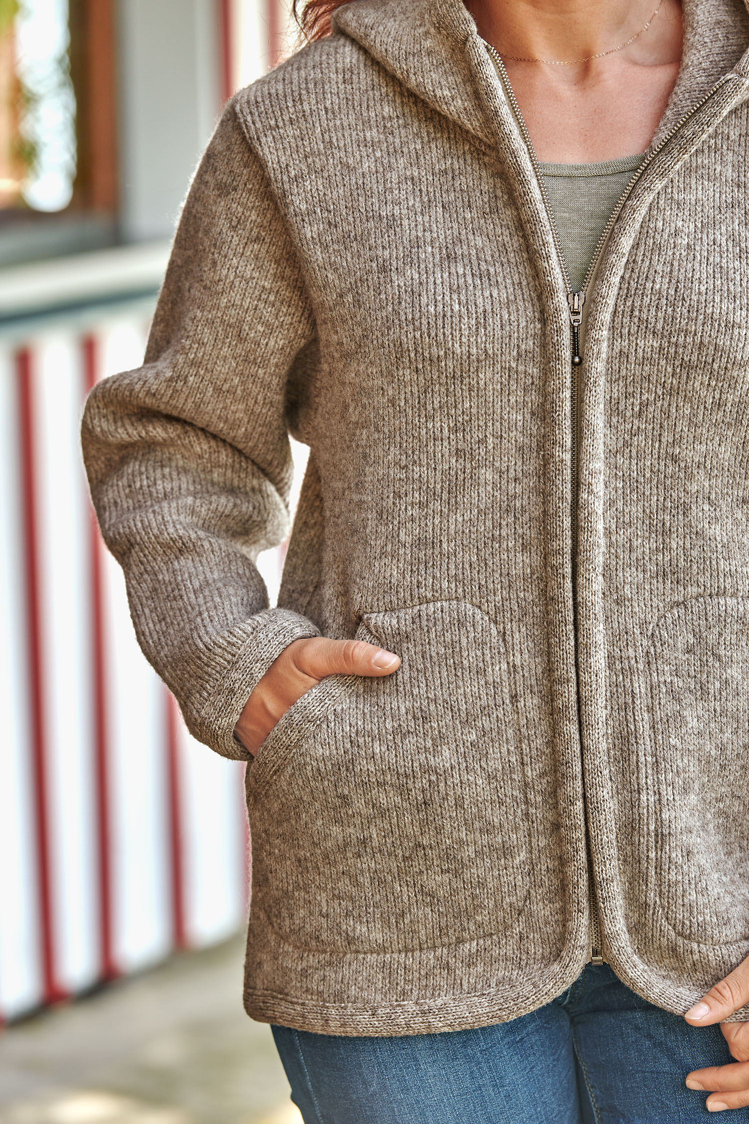 Diese robuste und warme unisex Jacke lassen wir aus 100 % ungefärbter regionaler Bio-Schurwolle (kbT) fertigen. Sie wird leicht gewalkt, wodurch ein unempfindliches, windabweisendes Gestrick entsteht. Die Jacke hat eine praktische Kapuze sowie zwei geräumige, seitlich eingearbeitete Taschen. Die Kanten sind sorgfältig eingefasst und verarbeitet.