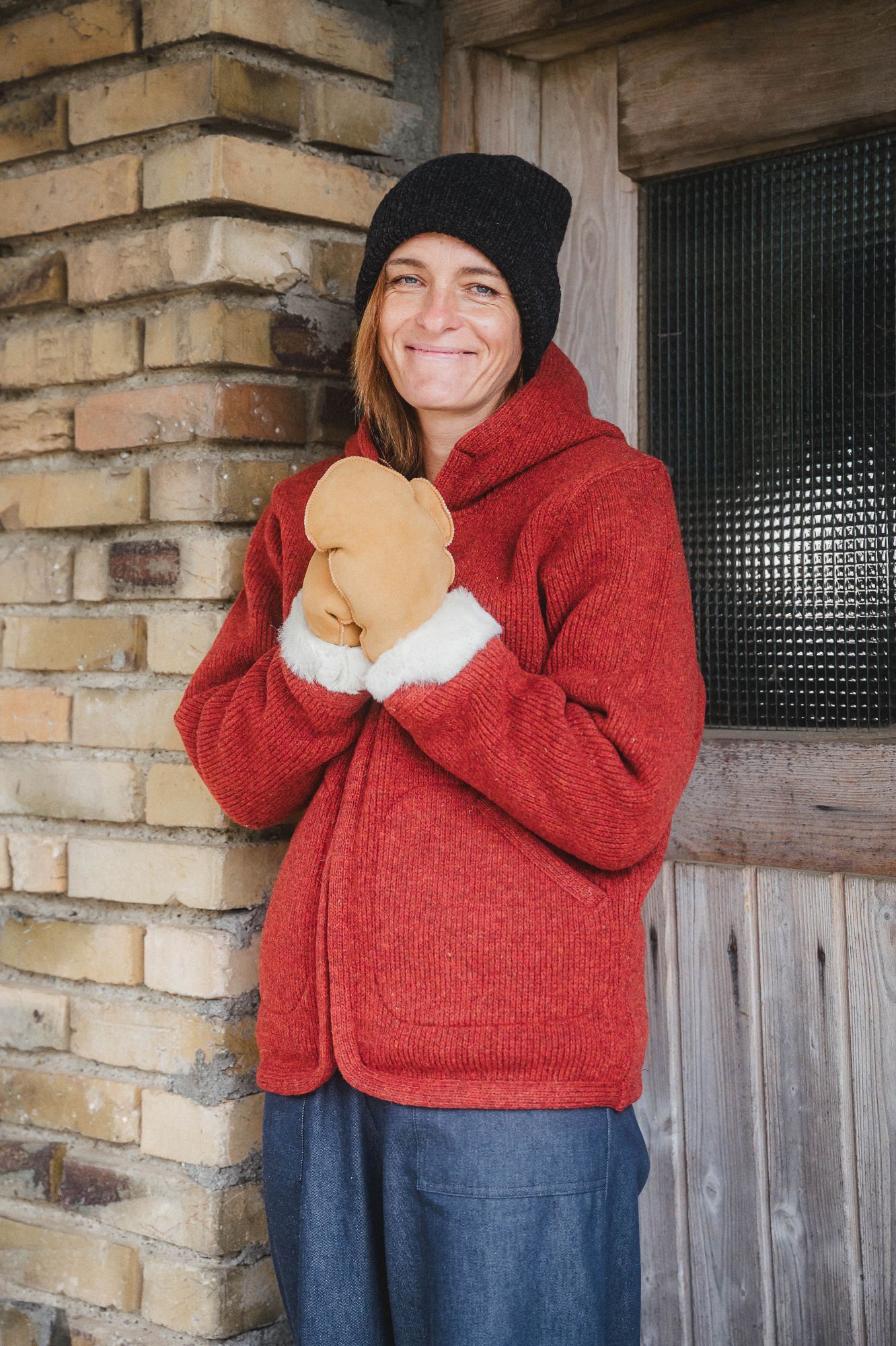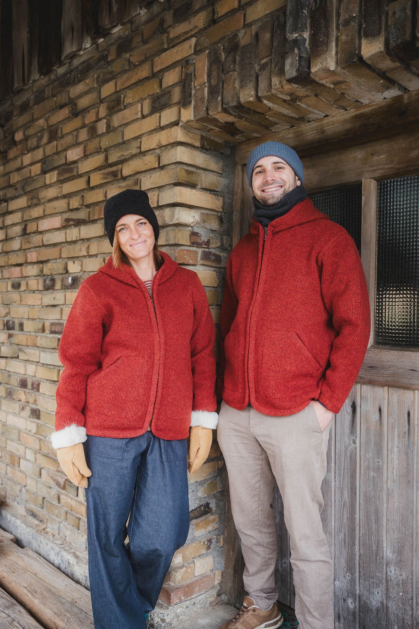 Diese robuste und warme Unisex-Jacke lassen wir aus 100 % regionaler Bio-Schurwolle (kbT) fertigen. Sie wird leicht gewalkt, wodurch ein unempfindliches, windabweisendes Gestrick entsteht. Die Jacke hat eine praktische Kapuze sowie zwei geräumige, seitlich eingearbeitete Taschen. Die Kanten sind sorgfältig eingefasst und verarbeitet.