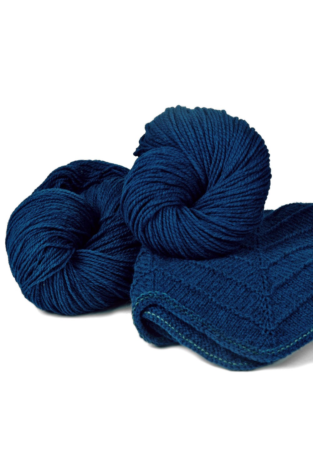 Für das vielseitig einsetzbare Dunkelblau kommt naturweißes Garn in die Färbekessel. Anders als bei der Pflanzenfärbung werden die Farbstoffe durch die chemische Färbung zu 96 - 99 % von der Wollfaser aufgenommen. Die Belastung des Abwassers ist daher sehr gering. Die verschiedenen Farben sind untereinander gut kombinierbar. Sie lassen sich aber auch schön zusammen mit den Naturfarben verarbeiten.